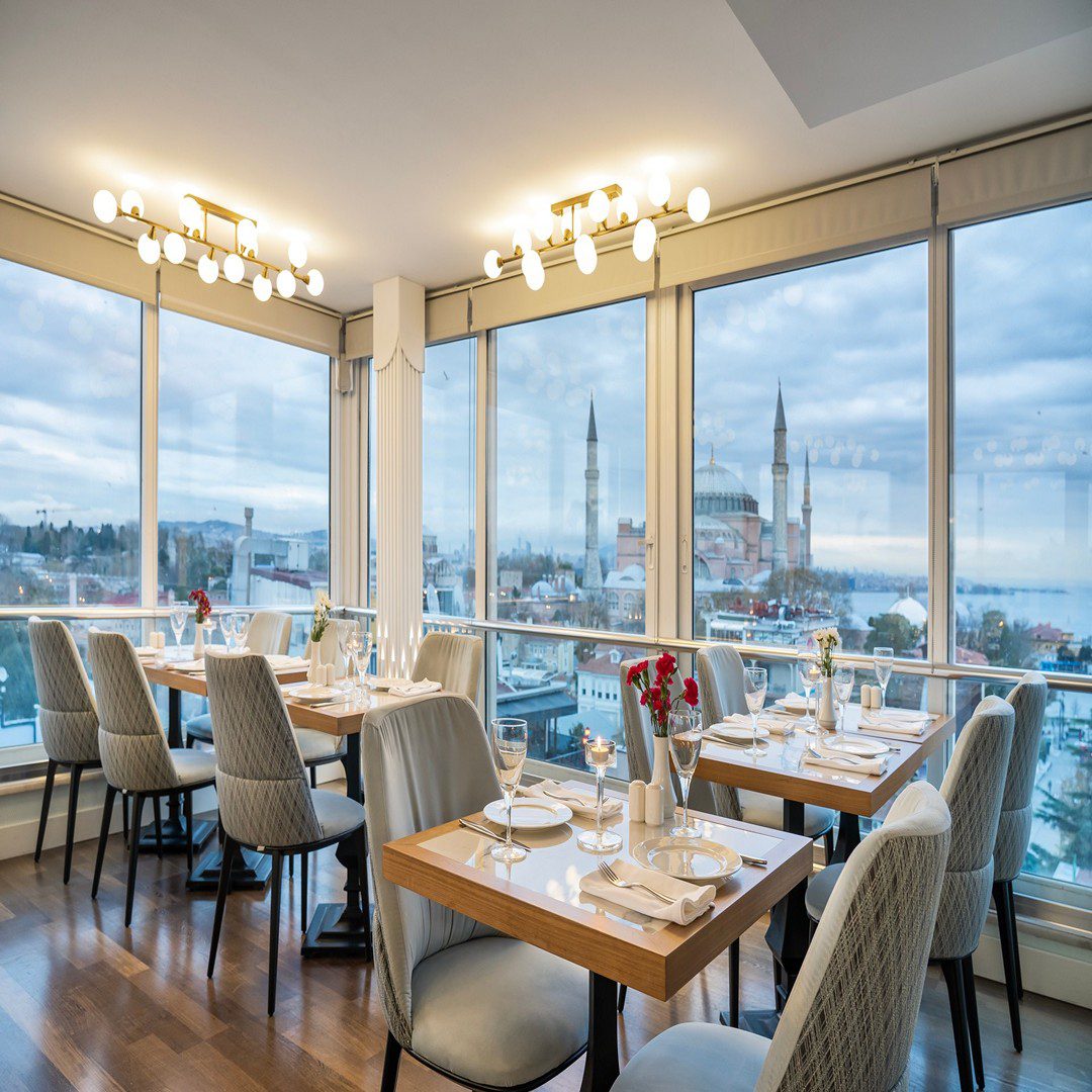 Located on the top of the Seres Hotel Old City, this restaurant offers a wide-angle view of the Golden Horn and the historical peninsula.