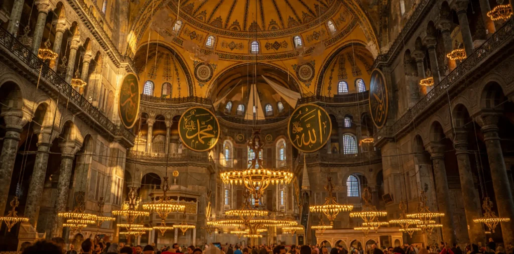 Hagia Sophia Grand Mosque is a masterpiece of symbols, mosaics, and hidden messages. However, since 2024, physical information boards inside the visitor gallery are almost non-existent. If you go without a guide, you are just looking at “pretty gold walls.”